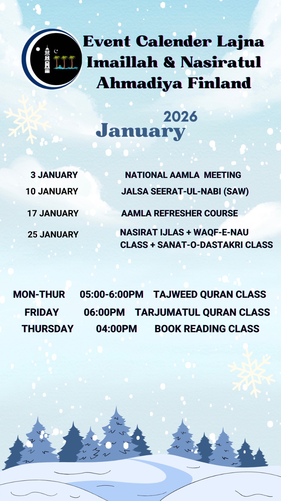 January event Calendar of lajna Ima´illah & nasirat ul Ahmadiyya Finland 2026